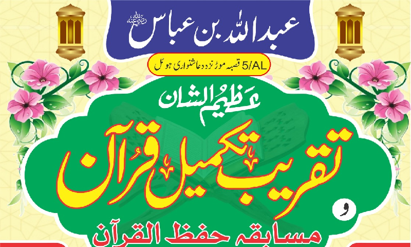 تفصیلات کے مطابق مدرسہ عبداللہ بن عباس قصبہ موڑ 5 اے ایل ، نزد عاشنواری ہوٹل میں امسال مجموعی طور پر 128 طلبہ و طالبات نے قرآن کریم ناظرہ اور ترجمہ کے ساتھ پڑھنے کی سعادت حاصل کی ہے جس کے لئے مدرسہ کی جانب سے ایک عالی شاہ تقریب منعقد کرنے کی تیاری کی گئی ہے ۔